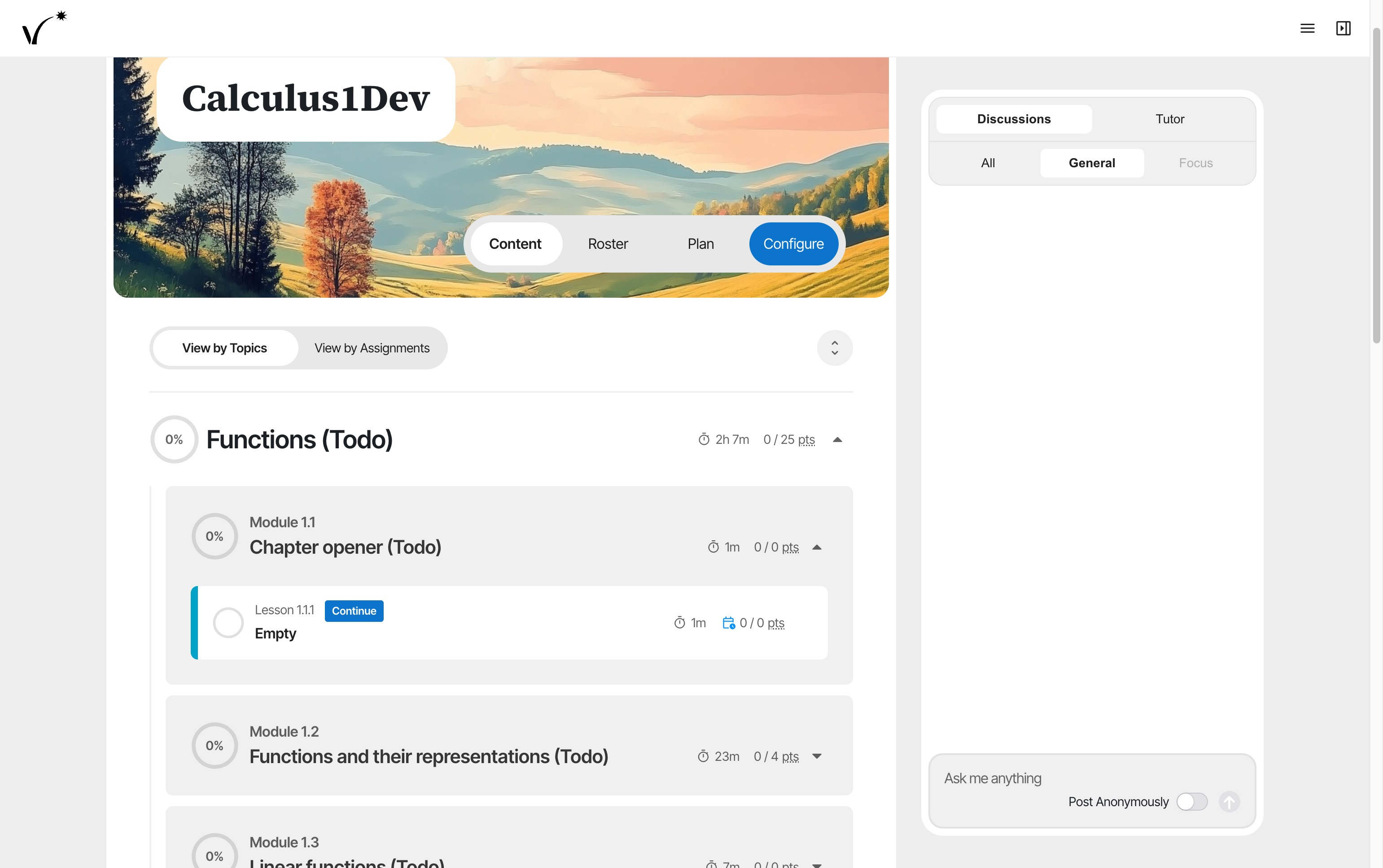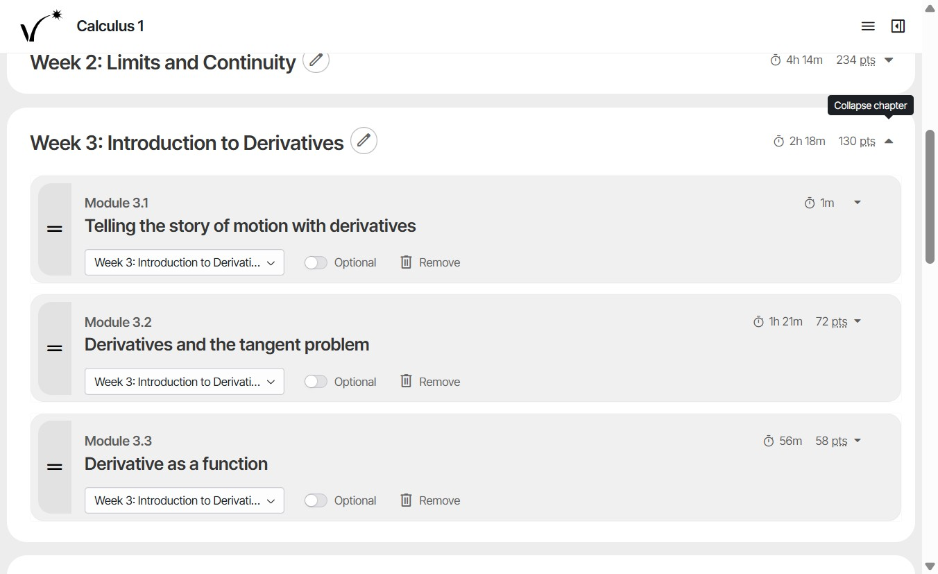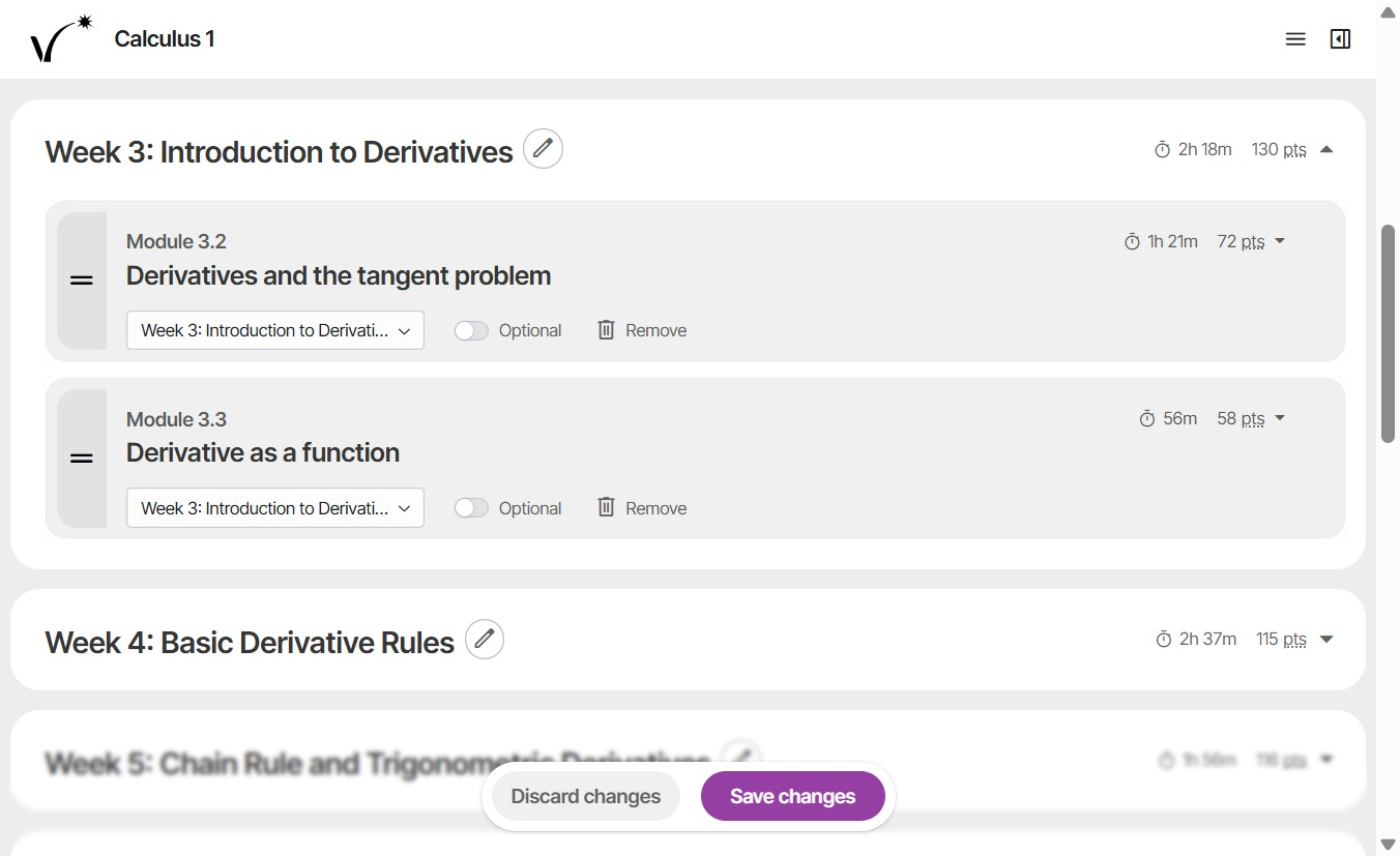 It’s important to arrange modules according to when assignments should be due. Once the assignment schedule is set, the modules in each week will be due during that week.